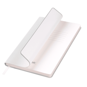 Внутри — страницы теплого светло-кремового оттенка из гладкого шелковистого офсета со скругленными уголками, которые обеспечивают комфортное письмо. Элегантное атласное ляссе с легким глянцем служит изысканным акцентом.