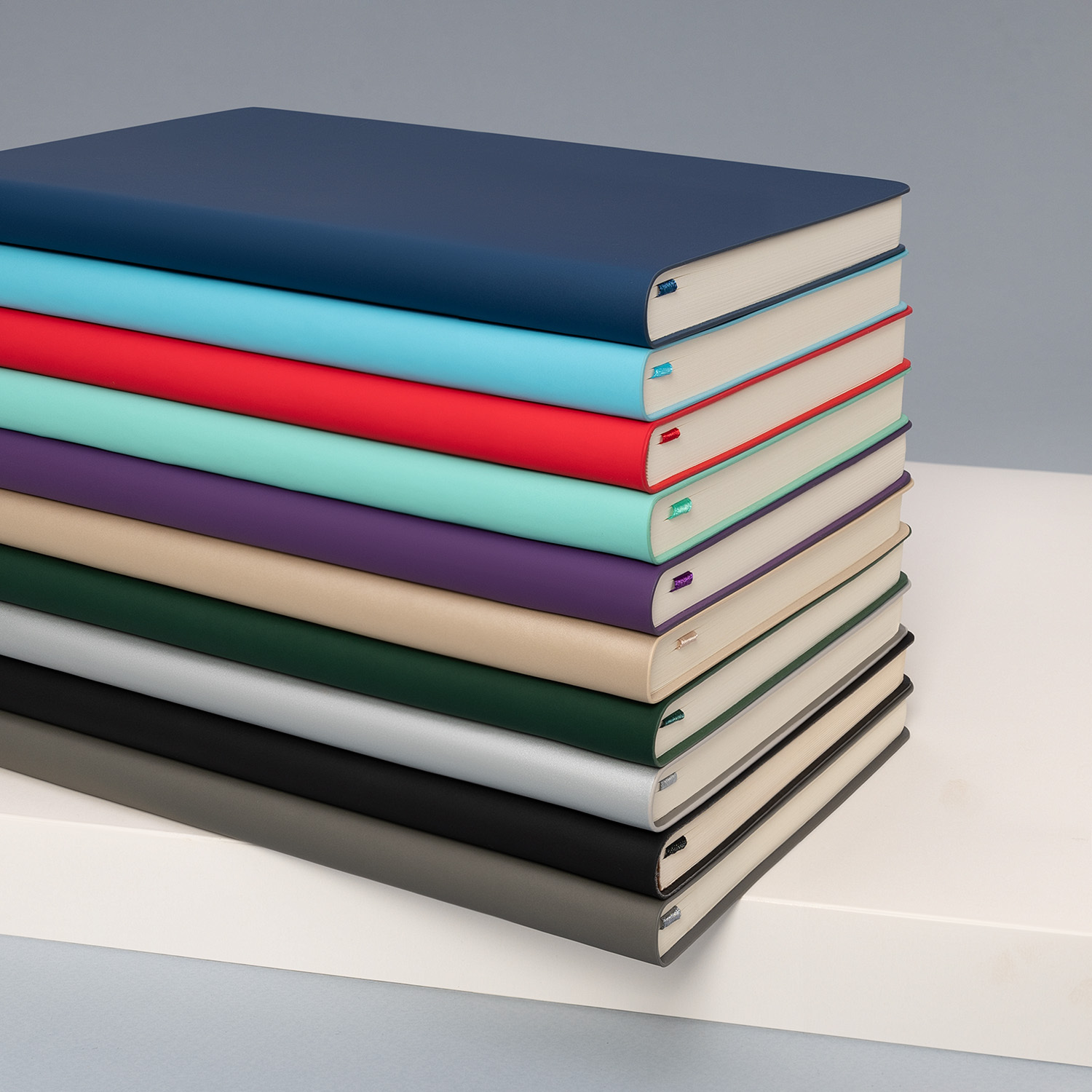Матовое покрытие Soft Touch с деликатным пудровым эффектом подарит неповторимое тактильное удовольствие. А кремовые форзац, нахзац и срез блока создадут гармоничное обрамление для гладких шелковистых страниц кремового оттенка. Элегантное атласное ляссе поможет вам легко ориентироваться в записях.
