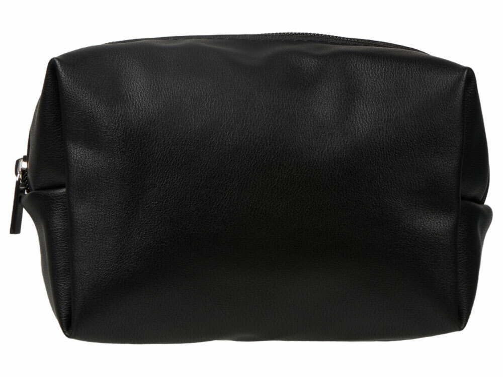Косметичка из искусственной кожи удобной и вместительной формы. Внутри подклад серого цвета с карманом для маленьких предметов.