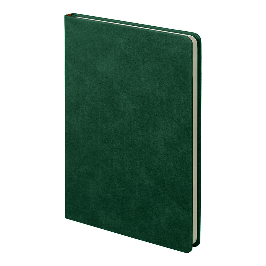 Ежедневник недатированный MuseЦвет обложки зеленый, декоративная коричневая полосаРазмер 130*210 мм, переплет твердыйОбложка термоактивный PU, с эффектом замшиБлок недатированный, в линейку, скругленные углыБумага кремовая, плотность 70 г м2Форзац нахцаз кремовые272 страницыЛяссе, 7 мм, в цвет обложкиУпаковка крафтовый сливбокс