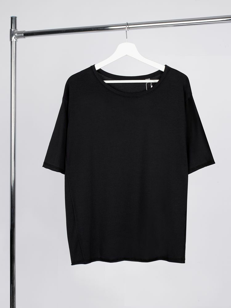 Футболка унисекс свободной посадки Vozduh создана для тех, кто следит за трендами и ценит комфорт. Необработанные края рукавов и низа изделия добавляют ему оригинальности и легкой небрежности, а боковые вставки создают притягательный летящий силуэт.