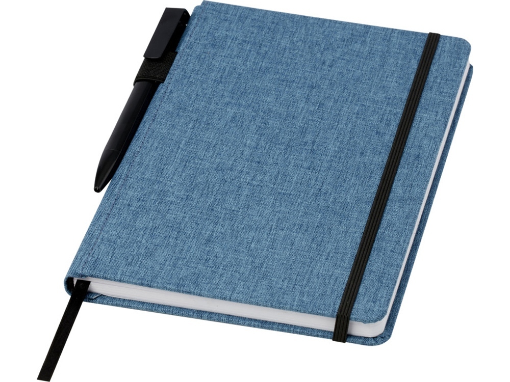 Блокнот формата А5 с отделкой из переработанного ПЭТ. Содержит 96 листов в линию плотностью 70 г/м², изготовленных из переработанной бумаги, с петлей для ручки и лентой-закладкой. В упаковке из картона. Recycled Plastic, Переработанная бумага. #?0:>2:0: FSC Recycled 100% P5.1 CU-COC-877277. FSC Recycled 100% P7.1 CU-COC-877277.
