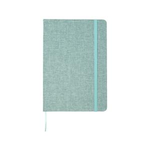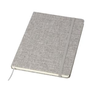 Блокнот формата А5 в твердой обложке из переработанного хлопка, 80 листов бумаги плотностью 70 г/м² в линейку. Блокнот имеет эластичную застежку, ленту и закругленные углы. FSC certified paper. FSC Mix Credit P7.1 CU-COC-877277.