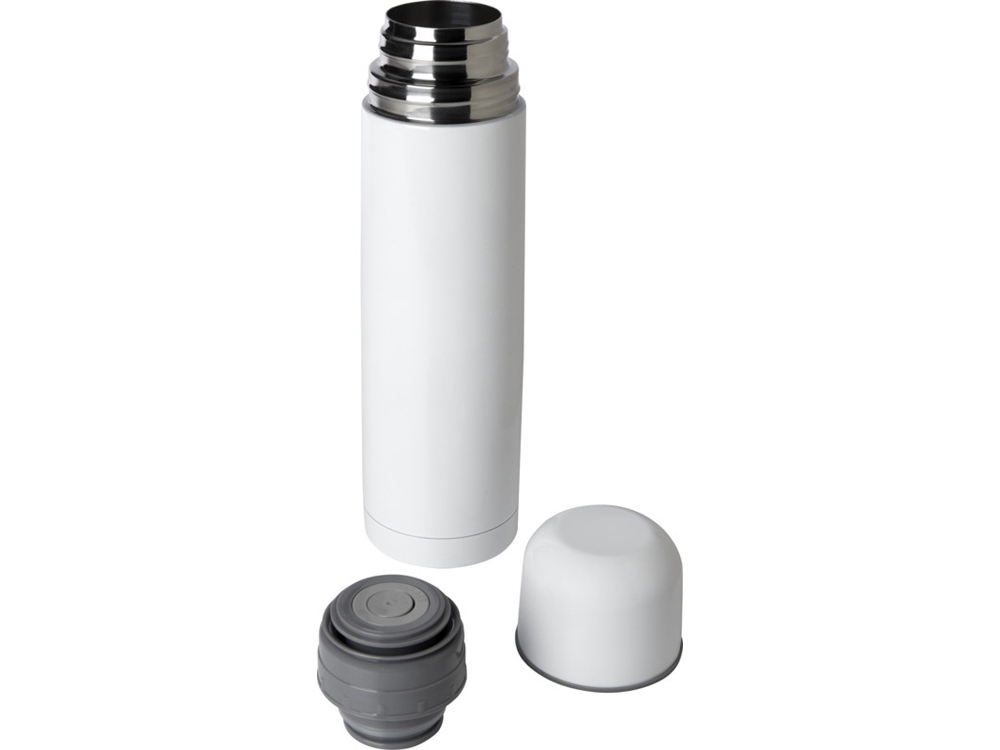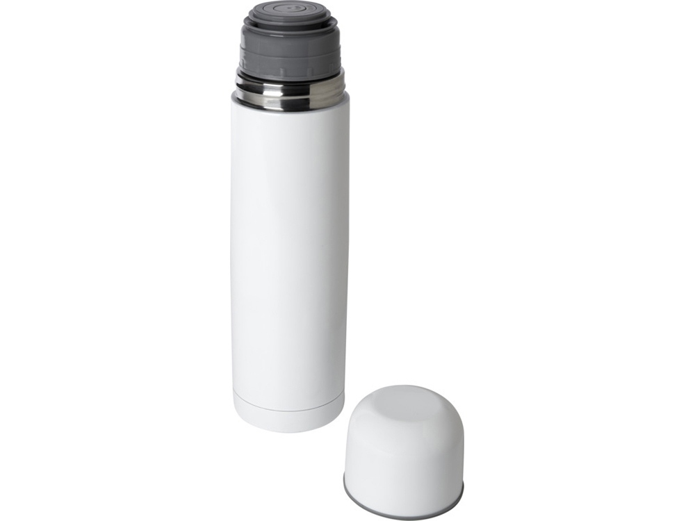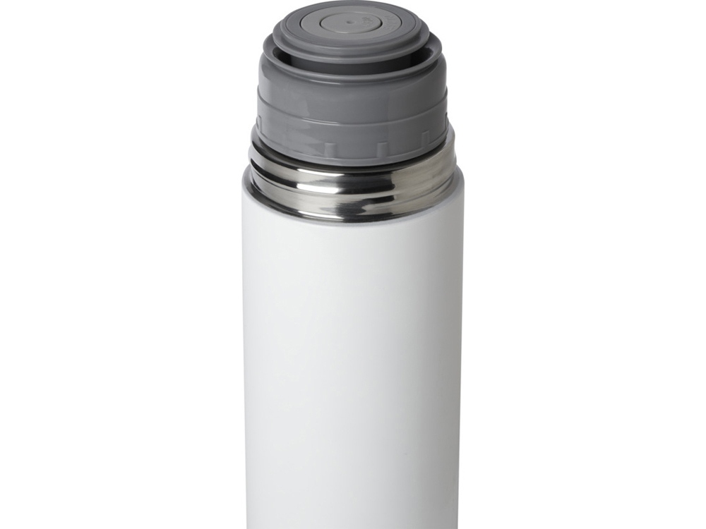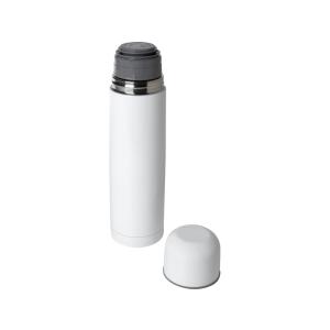 Изолированная колба с двойными стенками и крышкой, сертифицированная RCS. Кнопочный носик, управляемый одной рукой, который автоматически закрывается при привинчивании крышки-чашки к бутылке. Объем 750 мл. Recycled stainless steel.