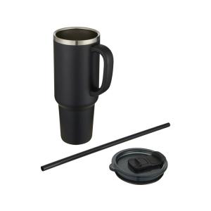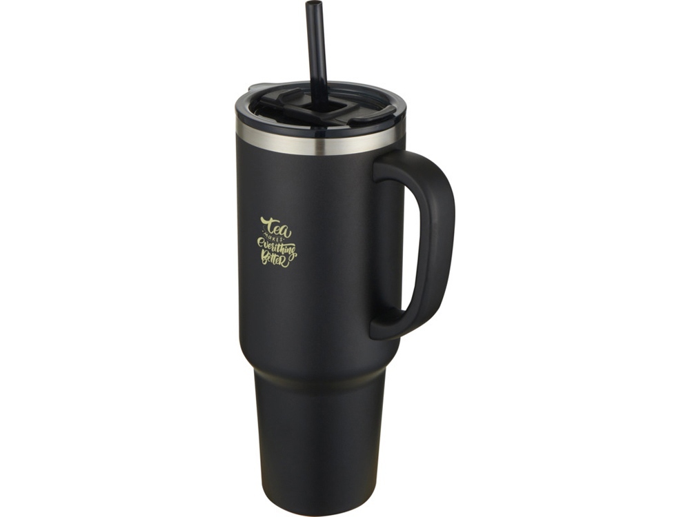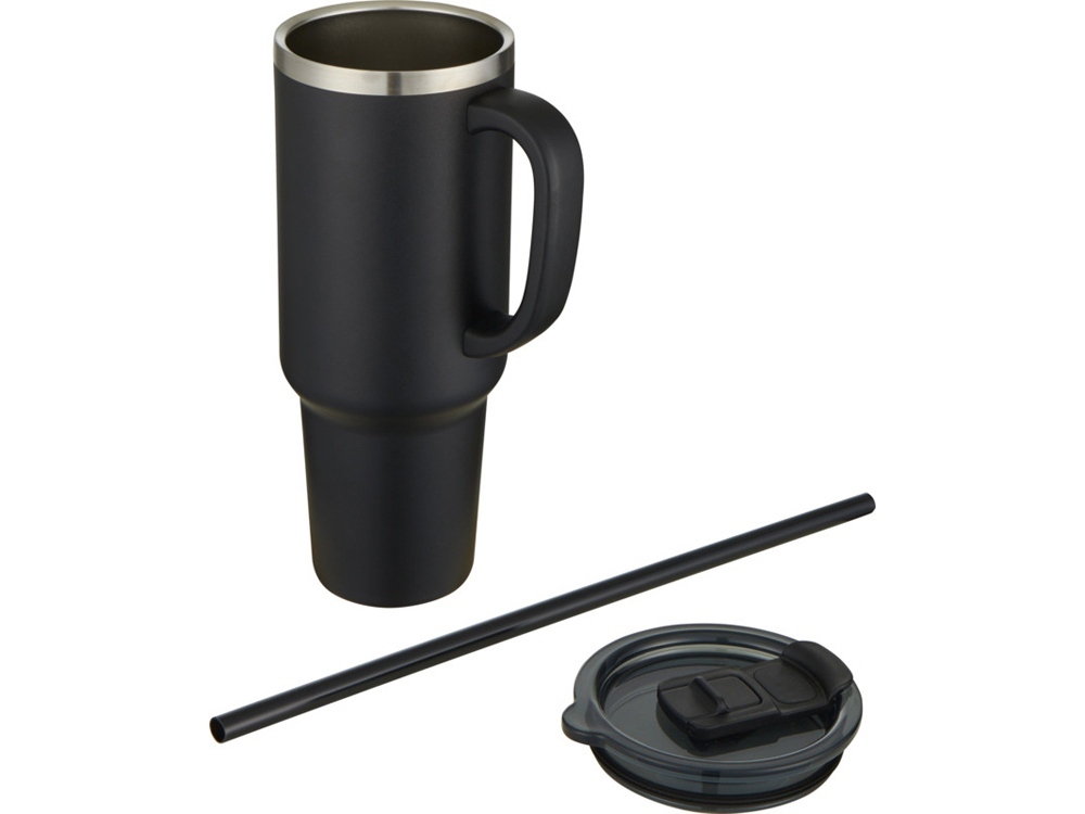 Sydney медная кружка с двойными стенками, сертифицированная согласно RCS, с вакуумной изоляцией и соломинкой, 1200 мл - сплошной черный в ассортименте цветов, материалов и моделей