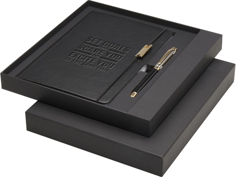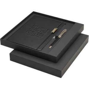 Legato блокнот формата А5 с набором из шариковой ручки и ручки-роллера - сплошной черный в ассортименте цветов, материалов и моделей