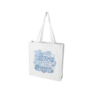 Эко-сумка Florida с о вставкой из 100% переработанного хлопка, сертифицированного согласно GRS, плотностью 270 г/м², станет более ответственным и долговечным выбором для ваших повседневных нужд. Благодаря вместимости до 14 литров и ручкам длиной 30 см он идеально подходит для удобной переноски продуктов, книг или повседневных вещей. Хлопок.