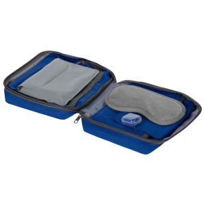 Длительные перелёты и поездки в авто или на поезде станут комфортнее с Comfy Flight. Всё, что необходимо для качественного сна в пути, уже в наборе: Маска для сна с мягкой удобной резинкой, которая почти не ощущается на голове, не пропускает свет; Беруши помогут отстраниться от окружающего шума; Подушка обеспечит удобное положение головы во время сна. Все предметы легко хранить в несессере, который уже включён в набор. - надувная подушка оснащена собственным чехлом; - беруши упакованы в пластиковый защёлкивающийся футляр для защиты от пыли; - несессер можно взять с собой как ручную кладь, а благодаря небольшому весу сета он идеально подойдет для перелета.