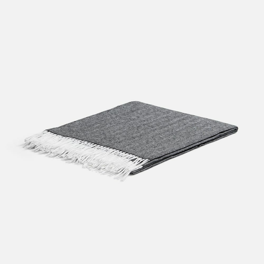 Классический рисунок «елочка» не слишком привлекает внимание, но в то же время добавляет изюминки. Смешанный состав пряжи продлевает срок службы и существенно облегчает уход за пледом.
