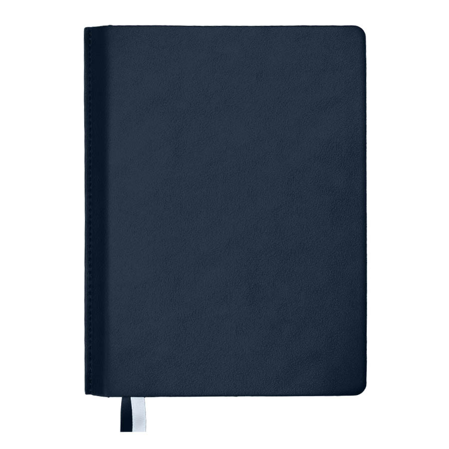 Ежедневник недатированный MaveЦвет темно-синий, близкий к Pantone 2379CРазмер 155*210 мм, переплет мягкийДекоративная строчка по корешку в цвет обложки Обложка - не термоактивный PU с эффектом кожи наппаБлок недатированный, в линейку, скругленные углыБумага кремовая, плотность 70 г м2Форзац нахцаз серые 5 U COOL GREY256 страницДвойное ляссе, 7 мм, белое+в цвет обложкиУпаковка крафтовый сливбокс+ бумага