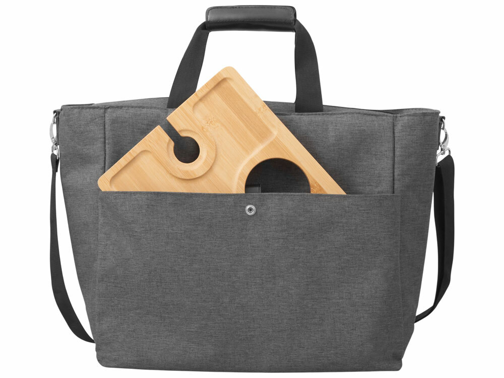 Уникальное предложение для тех, кто собрался на пикник, пляж или дачу! Большую вместительную сумку-холодильник удобно использоваться для транспортировки охлаждённых или подогретых продуктов и бутылок с разнообразными напитками. Внутри по бокам сумки расположены 2 изотермических кармана для высоких бутылок. Основное отделение на молнии. 2 ручки с фиксатором на липучке для удобства носить в руке. Большой наружный карман на кнопке. Съемная лямка на плечо регулируется по длине. Выгодный бонус - штопор с бамбуковой ручкой в комплекте. К сумке в наборе идет складной столик из натурального бамбука. Изготовленный из экологически чистого и долговечного бамбука, этот столик не только красив, но и практичен. Его легкие и прочные металлические ножки складываются одним движением, обеспечивая компактное хранение и удобную транспортировку. Возьмите его с собой на пикник, на пляж, на дачу или используйте как стильный приставной столик дома – он везде будет к месту! Важные особенности: - Элегантный дизайн из натурального бамбука: Придаст особый шарм любой обстановке. - Надежная фиксация напитков: Два углубления для бокалов и центральное отверстие для бутылки – забудьте о пролитых напитках! - Компактность и мобильность: Легко складывается и не занимает много места при хранении и транспортировке. - Прочность и долговечность: Натуральный бамбук и качественные металлические ножки прослужат вам долго. - Идеально для романтических вечеров, пикников и уютных посиделок.