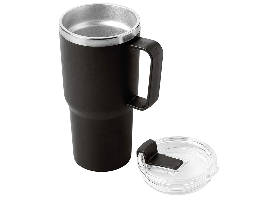 Термокружка из нержавеющей стали 304 (внутри) и полипропилена. В комплекте крышка с клапаном. Объём: 500 мл. Поставляется в дизайнерской коробке.
