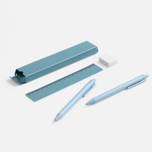 • В комплекте ручка, механический карандаш, линейка, ластик и упаковка.