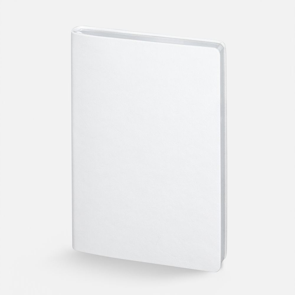 Ежедневник с гибкой обложкой, выполнен из материала Nebraska, белый BB (внутри и снаружи), дополнен ляссе белого цвета.