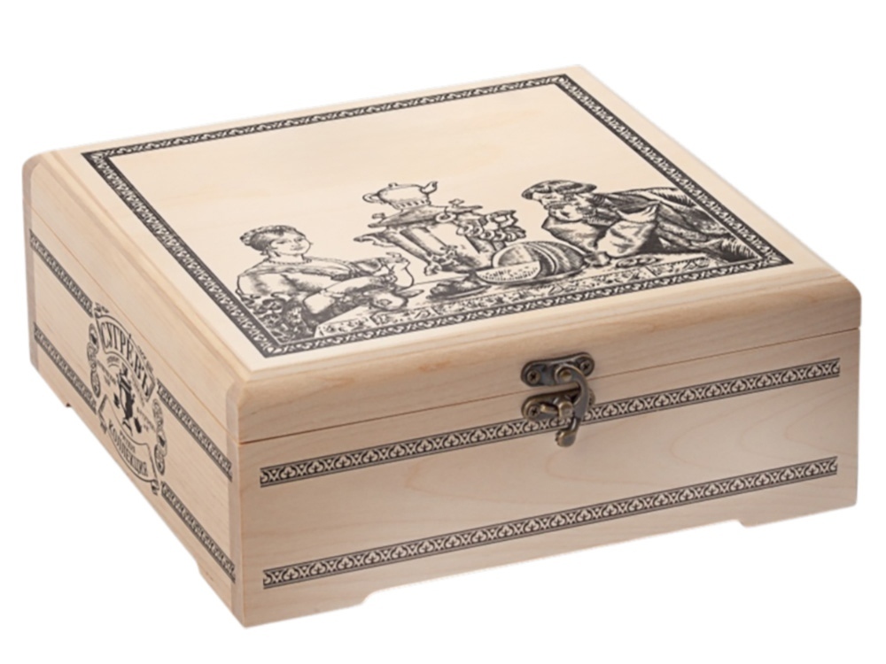 Подарочный набор из семи эксклюзивных купажей листового чая, характерных для разных регионов России и елки ручной работы с натуральным вареньем, в сувенирной шкатулке из массива берёзы. В набор входит: - По-алтайски: иван-чай, чай зелёный, имбирь, ромашка, сагаан-дали, цветки гомфрены, красная смородина, вишня. - По-кубански: чай чёрный байховый, лепестки календулы, ягоды облепихи, имбирь, цветки апельсинового дерева, шелковица. - По-уссурийски: чай чёрный байховый, ягоды можжевельника, мята, рябина черноплодная, клюква. - По-сибирски: чай чёрный байховый, шиповник, цветок пиона, мята, брусника, кусочки малины. - По-вологодски: гибискус, яблоко, ромашка, мята, малина, календула. - По-карельски: чай зелёный, незабудка, вереск, рябина черноплодная, черника, брусника, мята. - По-московски: чай чёрный байховый, кусочки яблока, кусочки лесной груши, ягоды вишни, шиповник, кусочки малины. - Варенье из морошки: ягода морошки, сахар