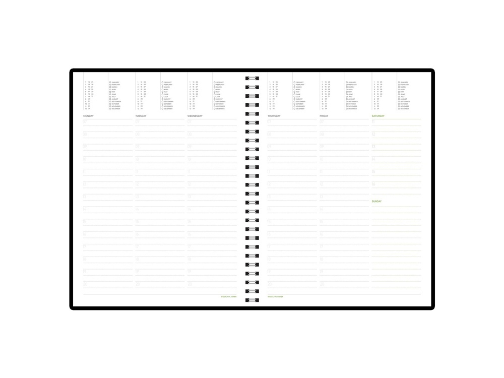 Недатированные деловой ежедневник «Tintoretto». Реальный шов по периметру в цвет материала Гибкий мягкий материал обложки прекрасно подходит для нанесения тиснения. Ежедневники выпускаются в формате В5, его размеры составляют 185 х 230 мм. Блок - 136 листов соединен полускрытым металлическим гребнем. Для блока используется высококачественная бежевая бумага, обладающая плотностью 70 грамм. В начале ежедневника расположены страницы со справочным материалом.