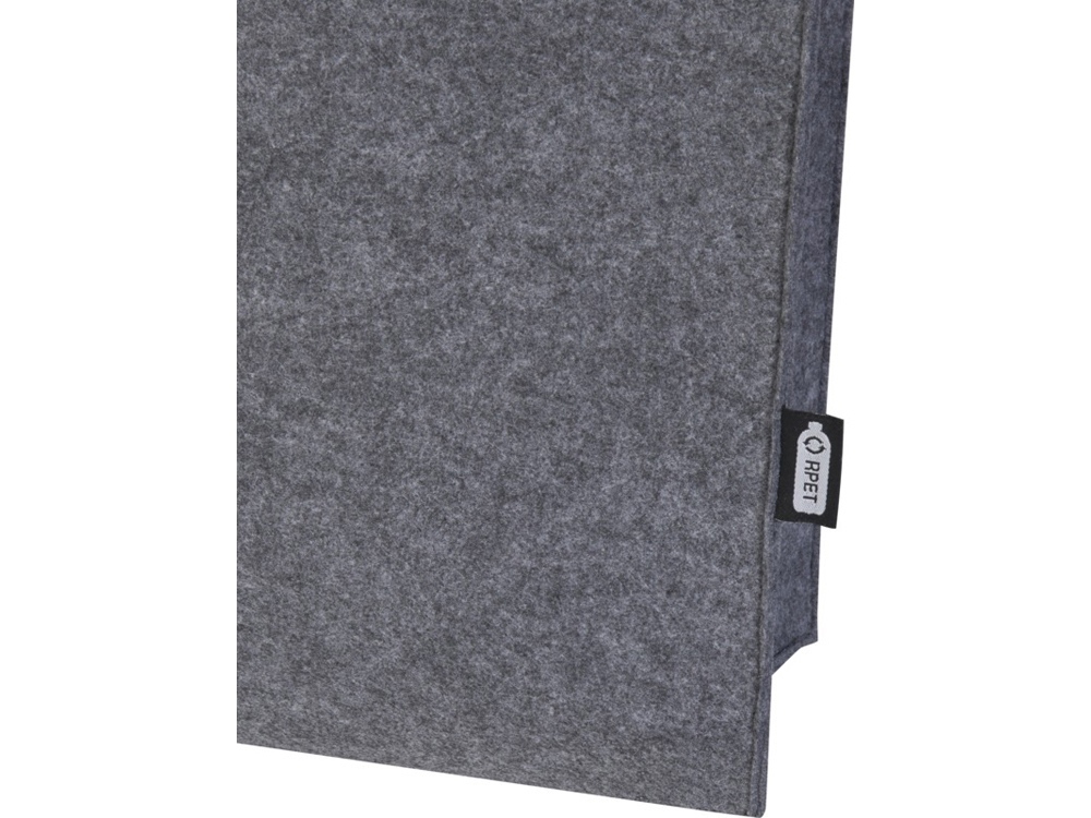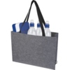 Большая эко-сумка с широким дном и боками из мягкого и прочного высококачественного переработанного фетра, сертифицированного согласно GRS. Сумка имеет большое основное отделение с объемом (до 20 литров), усиленные тканые хлопковые ручки (30 x 2,5 см) для оптимального удобства переноски и застежку-кнопку в верхней части. GRS certified recycled polyester.