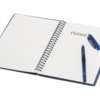 Многоразовый набор из ручки и блокнота в мягкой обложке из каменной бумаги. Блокнот имеет обложку из картона, закругленные углы и 32 листа линованной бумаги плотностью 120 г/м². В производстве каменной бумаги не используется дерево, а на сам процесс изготовления затрачивается гораздо меньше энергии в сравнении с производством переработанной или целлюлозной бумаги. Сзади имеется карман для хранения черной протирочной ткани (входит в комплект). Ручка из переработанного пластика с стираемыми чернилами, прозрачным корпусом, белым ластиком сверху и однотонной цветной рукояткой. Цвет чернил: черный. Длина непрерывной линии: 250 метров. Размер пера: 0,7 мм.