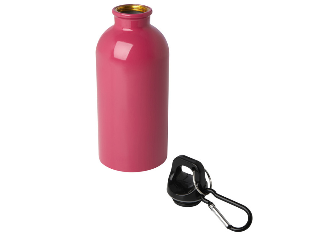 Одностенная бутылка для воды с карабином Oregon, изготовленная из нержавеющей стали, сертифицированной по стандарту RCS, объемом 400 мл - Фуксия в ассортименте цветов, материалов и моделей