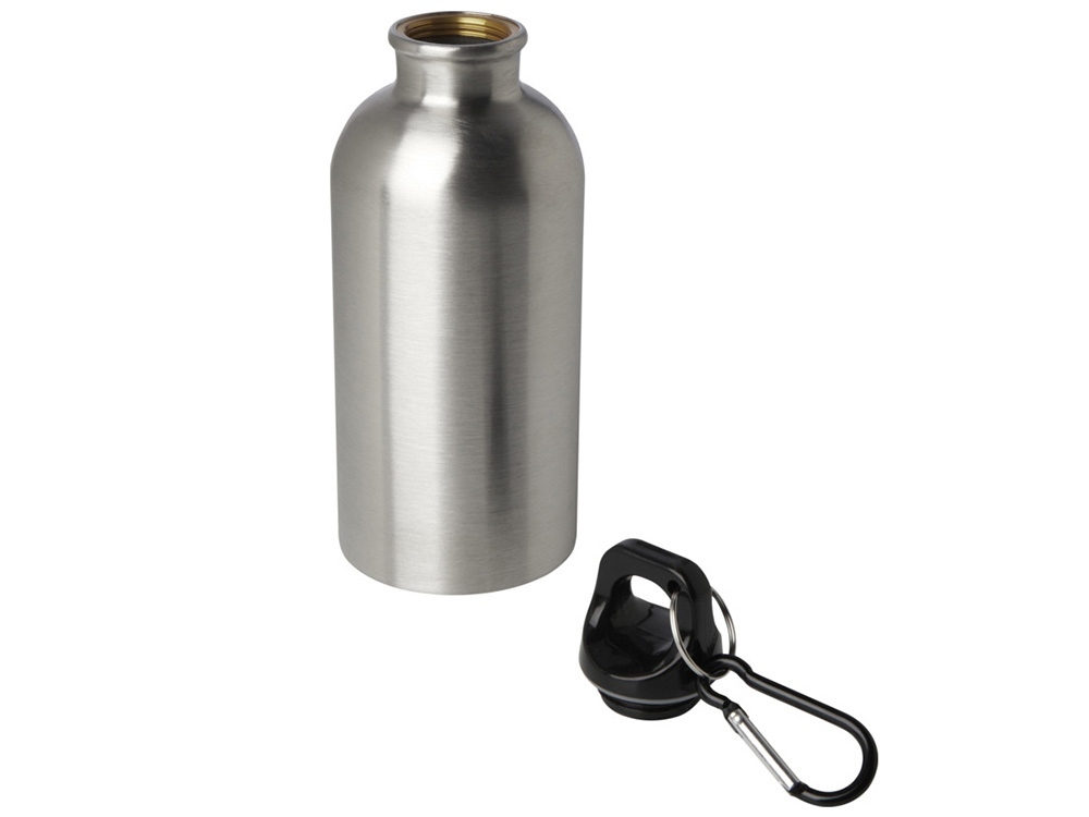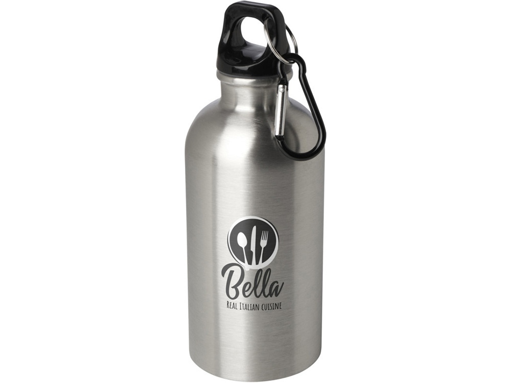Одностенная бутылка для воды с карабином Oregon, изготовленная из нержавеющей стали, сертифицированной по стандарту RCS, объемом 400 мл - Серебряный в ассортименте цветов, материалов и моделей