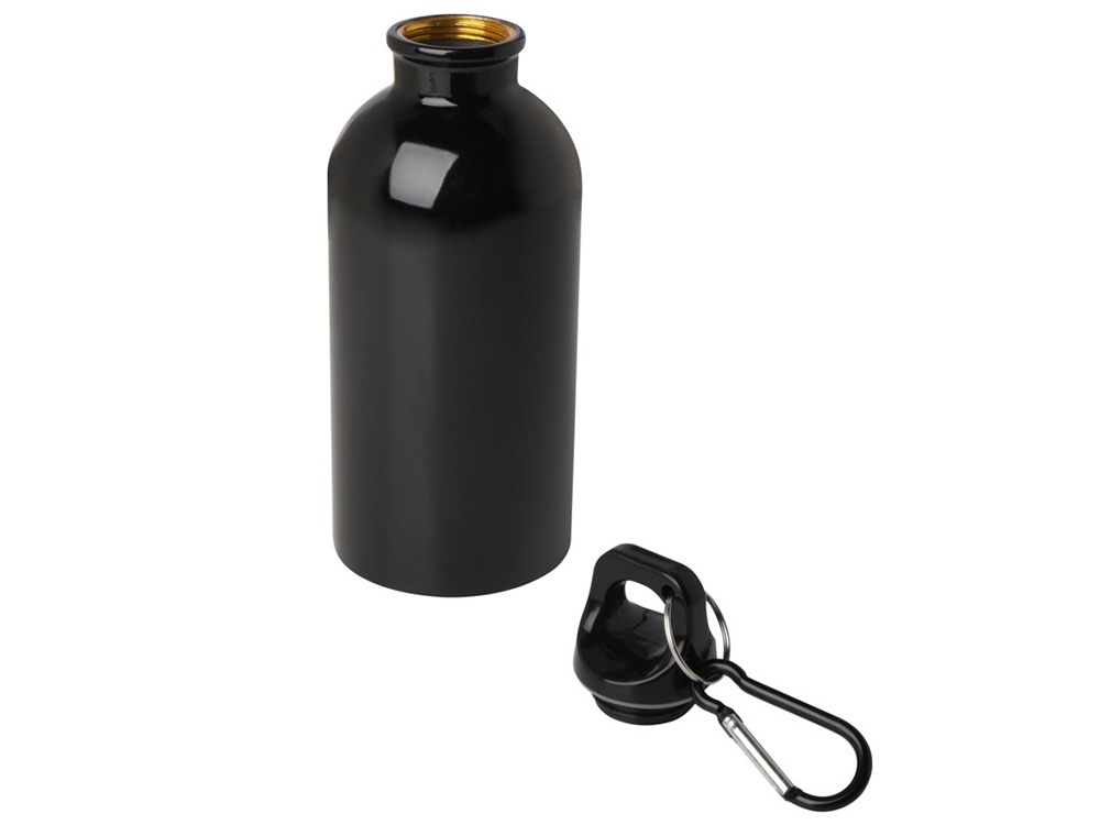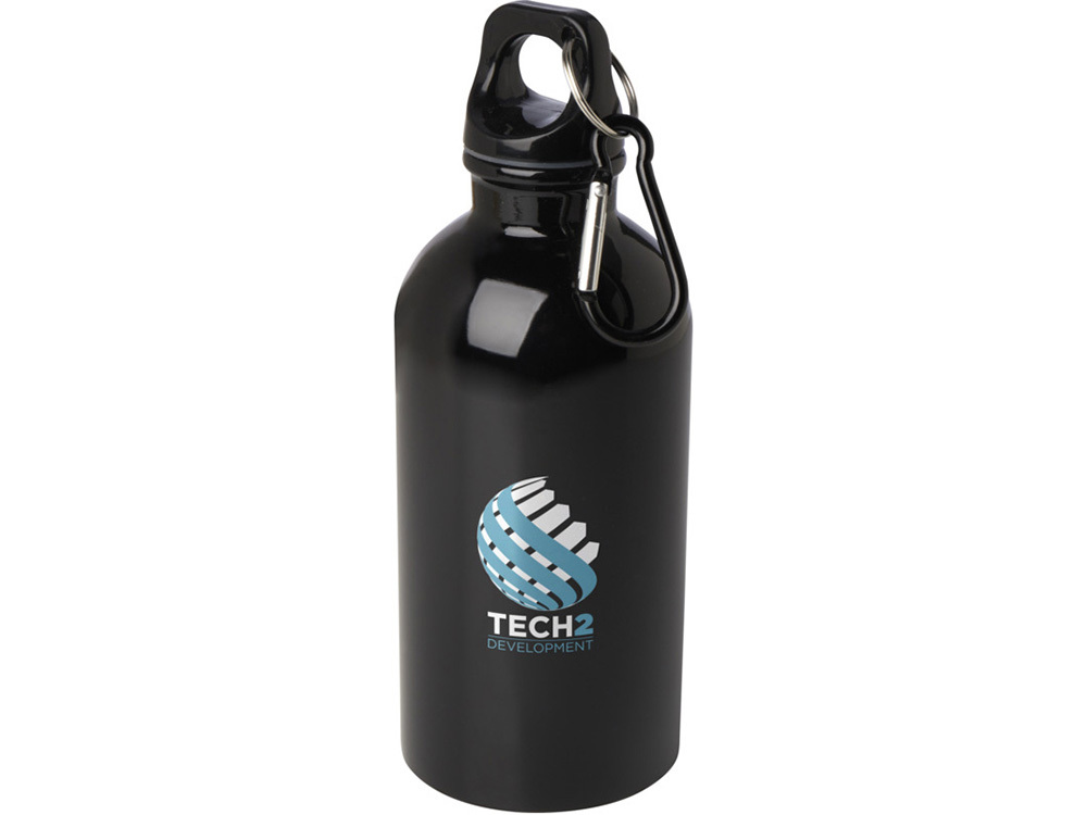 Одностенная бутылка для воды с карабином Oregon, изготовленная из нержавеющей стали, сертифицированной по стандарту RCS, объемом 400 мл - сплошной черный в ассортименте цветов, материалов и моделей