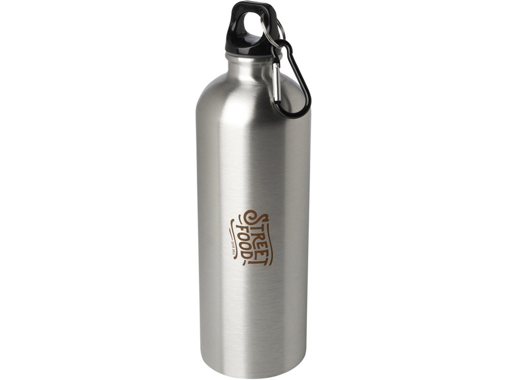 Одностенная бутылка для воды с карабином Oregon, изготовленная из нержавеющей стали, сертифицированной по стандарту RCS, объемом 750 мл - Серебряный в ассортименте цветов, материалов и моделей