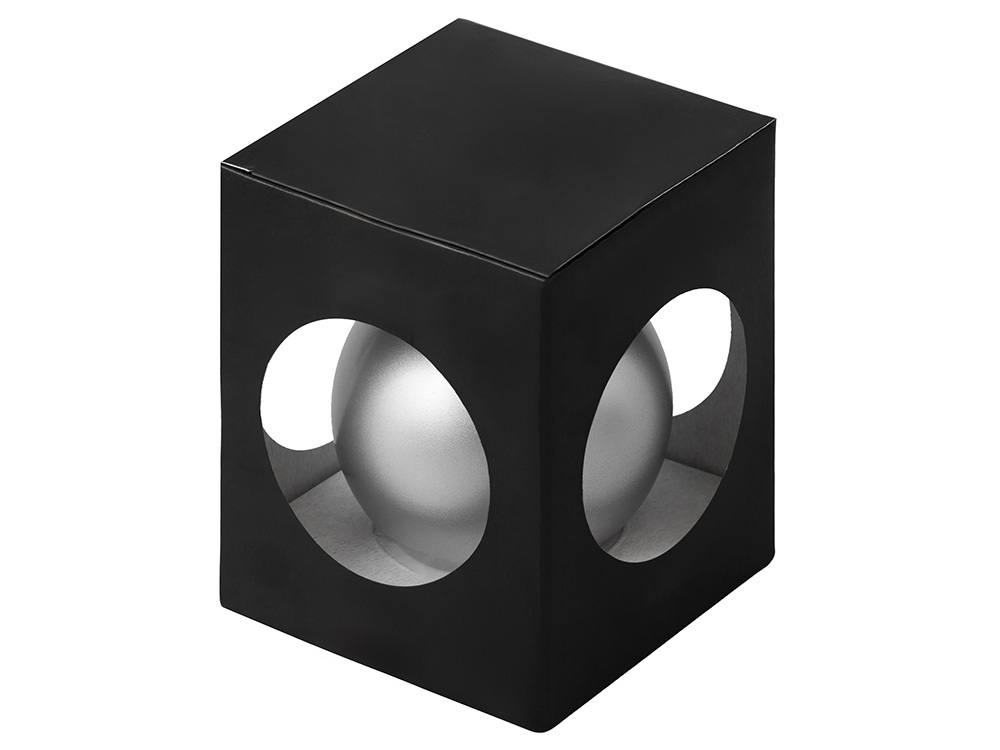 Стеклянный елочный шар "Christmas bauble", серебро, металлик, с серебристым колпачком в черной коробке в ассортименте цветов, материалов и моделей