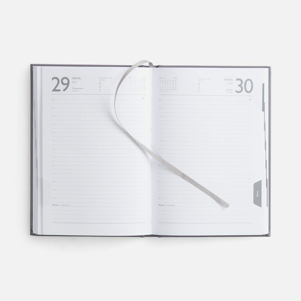 Ежедневник с твердой обложкой с поролоном из искусственной кожи, дополнен декоративной строчкой, капталом и ляссе в цвет ежедневника.