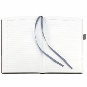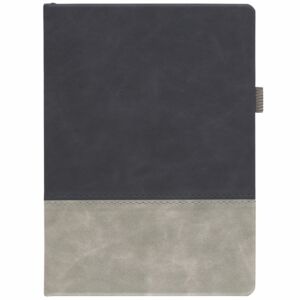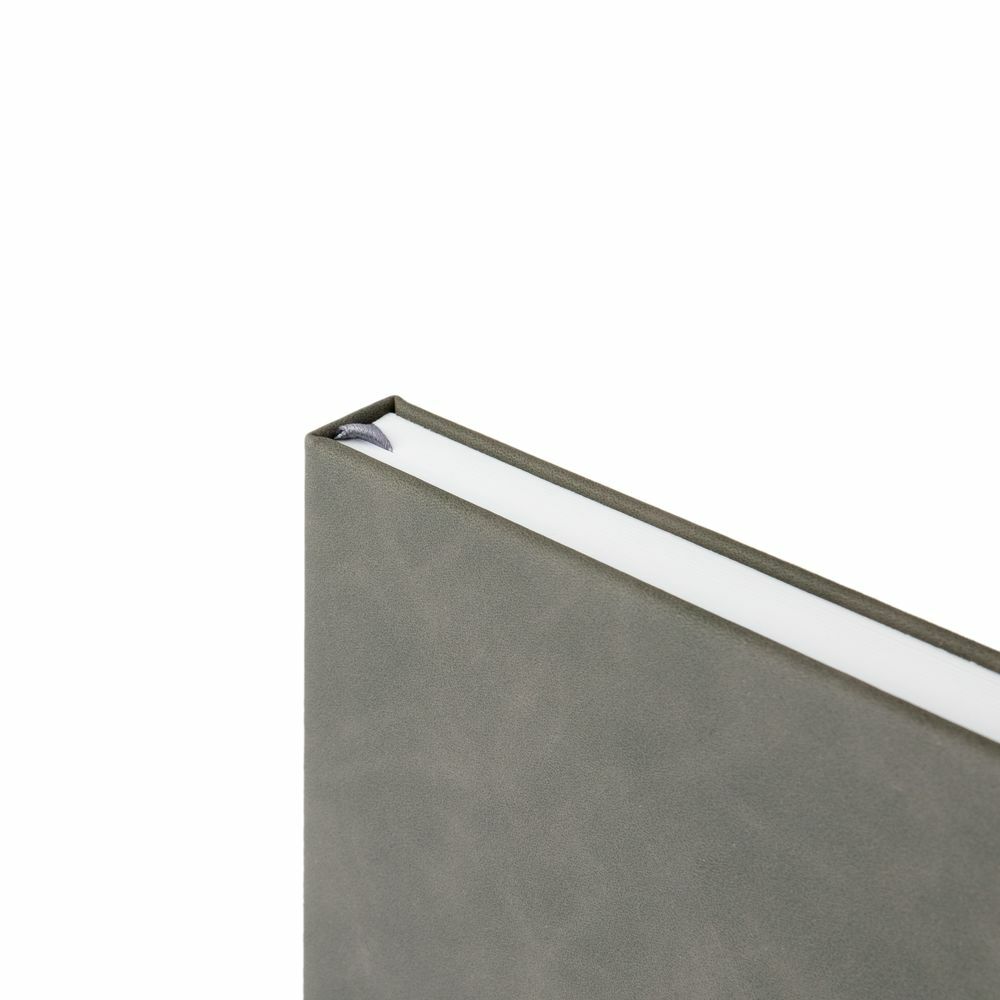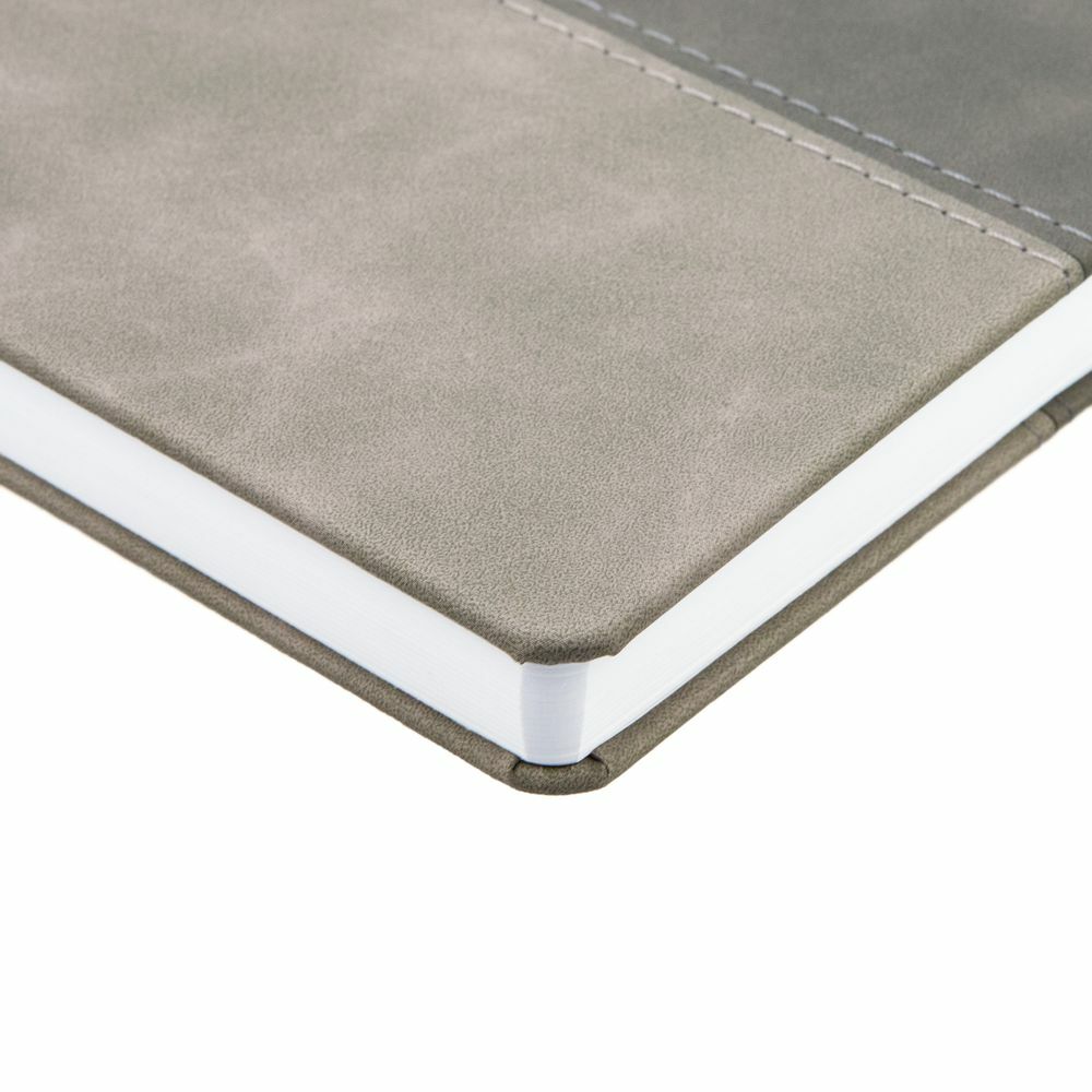 Ежедневник с твердой обложкой, без поролона, со сшивкой материалов Nubuck Touch серый СС, и Nubuck Touch тёмно-серый ЕЕ., дополнен двойным ляссе и петлей-резинкой для ручки.
