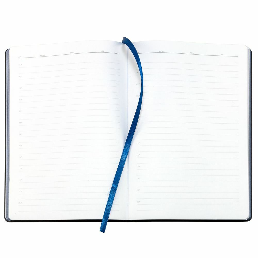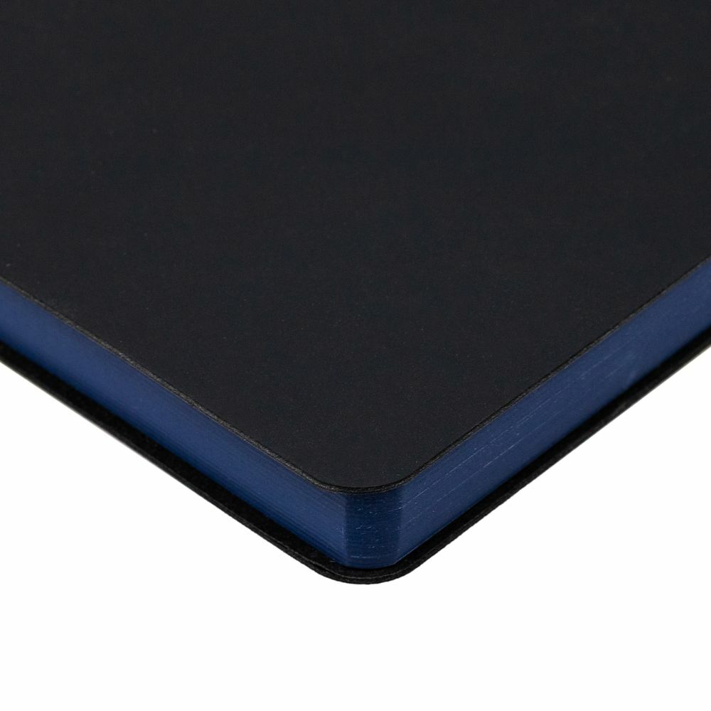 Ежедневник с гибкой обложкой, выполнен из материала Soft Touch, черный АА, дополнен петлей для ручки из материала Nice Touch, синий НН и цветным ляссе.