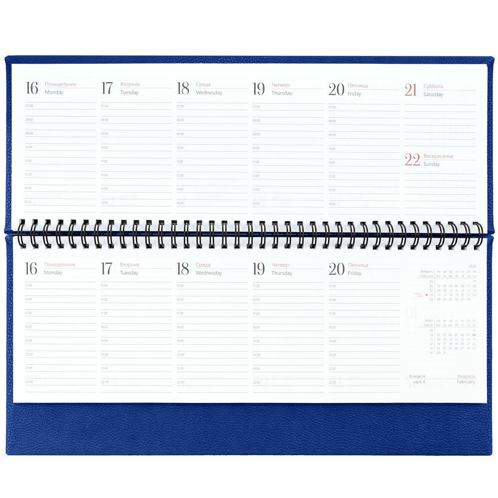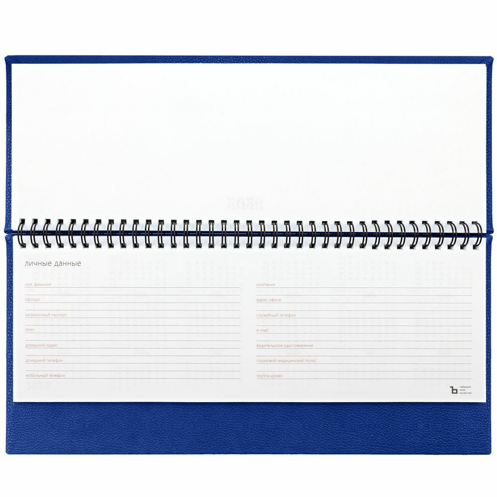 Планинг с твердой обложкой с поролоном, выполнен из материала La Fite, синий НН.
