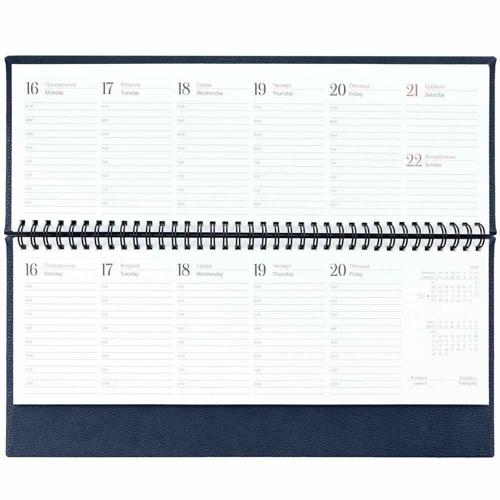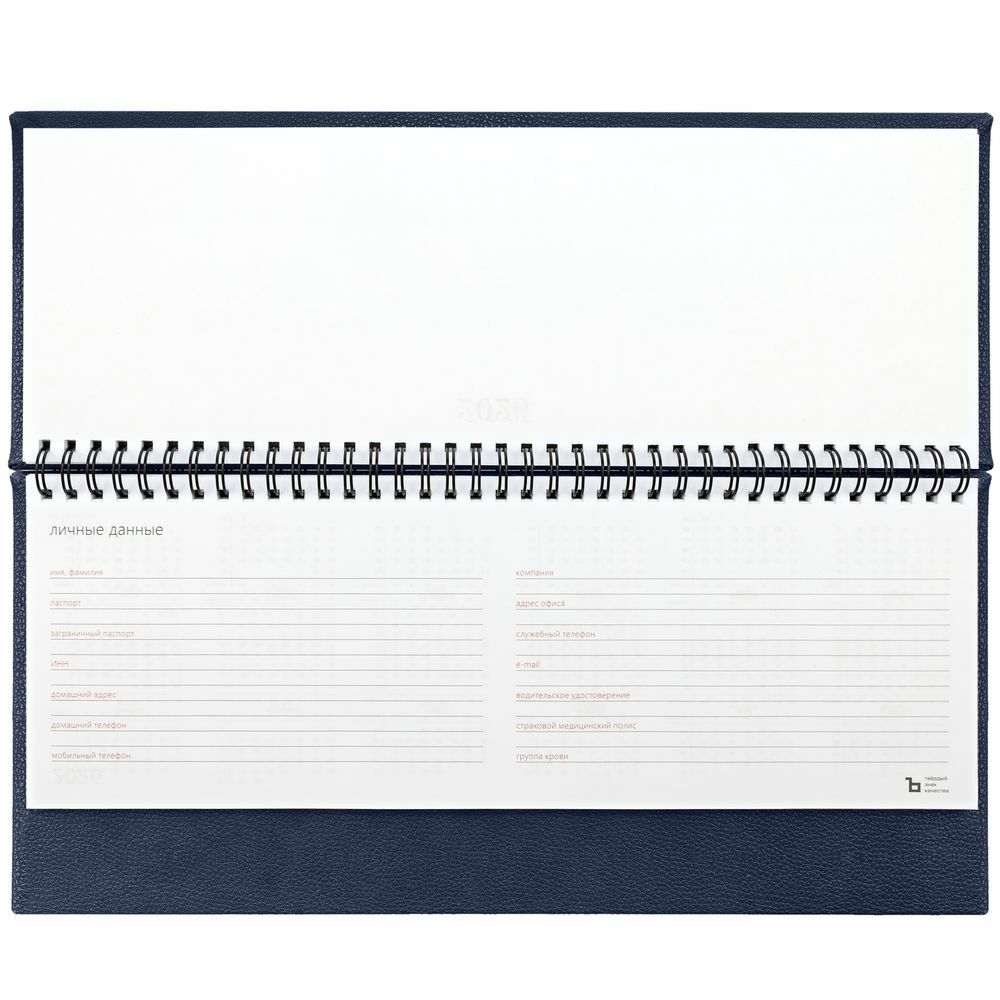Планинг с твердой обложкой с поролоном, выполнен из материала La Fite, темно-синий ХХ.