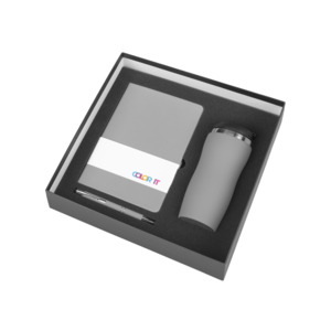 Подарочный набор с блокнотом С1, металлической ручкой и термокружкой, серый в ассортименте цветов, материалов и моделей