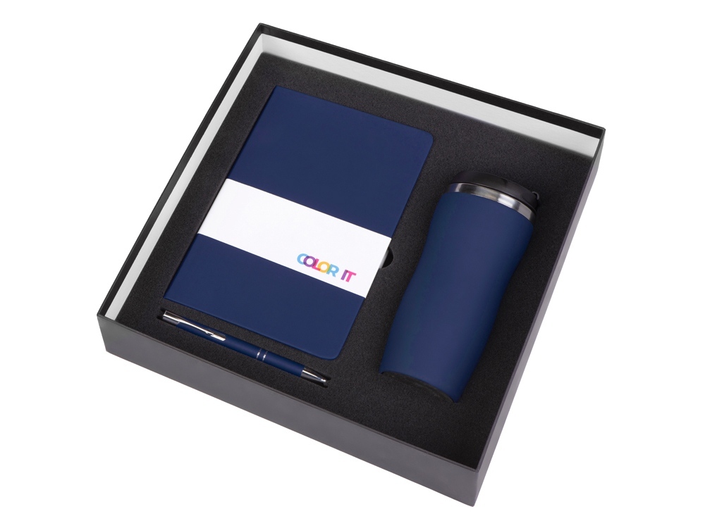Color It — линейка, в которую входят хиты мерча в десяти самых популярных цветах. Еще никогда собрать сет под свой брендбук не было так просто. Широкая цветовая палитра серии позволяет создать идеальный набор в едином оттенке Pantone. Все товары имеют тактильно приятное покрытие софт-тач. Сет поставляется в коробке: мы продумали все, включая подарочную упаковку, за вас — осталось нанести лого! Термокружка оснащена плотно завинчивающейся крышкой, которая исключает проливание содержимого. Откидной клапан позволяет пить, не снимая крышку. Сохранение температуры осуществляется благодаря вакуумной изоляции и двойным стенкам. Бизнес-блокнот в твёрдой обложке имеет ляссе в тон обложки. Бумажный блок разлинован в линейку и выполнен из бумаги, полученной из древесины из специальных восполняемых лесных ресурсов, имеет сертификат FSC. Шариковая ручка имеет сменный стержень, поэтому такой мерч прослужит дольше обычной одноразовой ручки, долго напоминая о вас клиентам. - софт-тач покрытие на всех предметах набора; - объём термокружки: 350 мл; - блокнот А5 128 листов; - ручка с необычным слайдером; - подарочная упаковка из картона, оклеенного дизайнерской бумагой уже включена в набор.