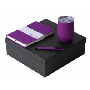 Подарочный набор c блокнотом C2, ручкой и термокружкой, фиолетовый в ассортименте цветов, материалов и моделей