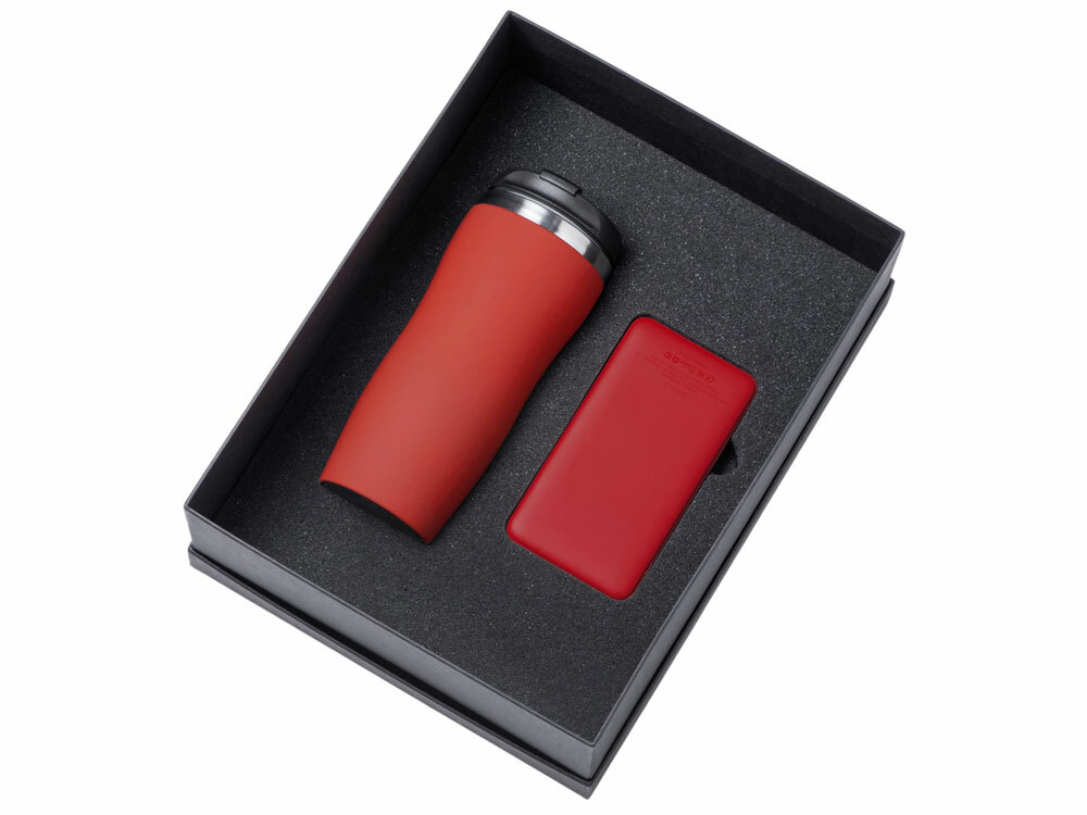 Подарочный набор c вакуумной термокружкой и повербанком С2, красный в ассортименте цветов, материалов и моделей
