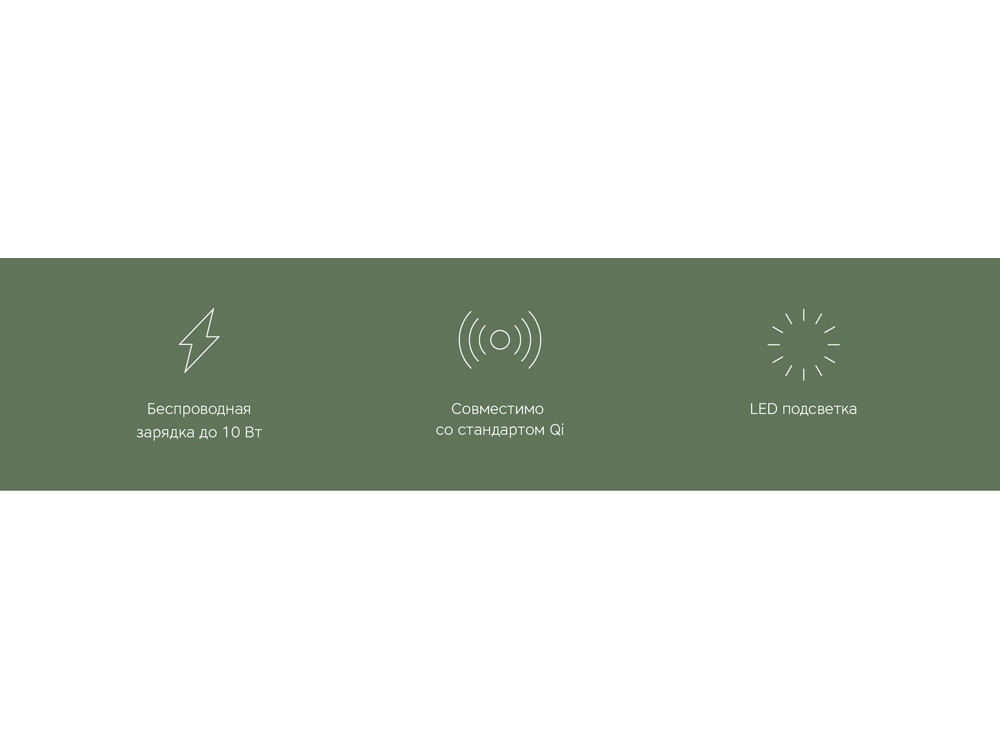 • Совместимо с устройствами, изготовленными по стандарту Qi • Быстрая зарядка. Поддерживает быструю зарядку до 10Вт* При включенном в сеть БЗУ по контуру горит зеленая подсветка, в режиме заряда мобильного телефона подсветка светится синим цветом. *для зарядки в быстром режиме необходимо использовать сетевое USB ЗУ (в комплект не входит), поддерживающее технологию Quick Charge 2.0/3.0