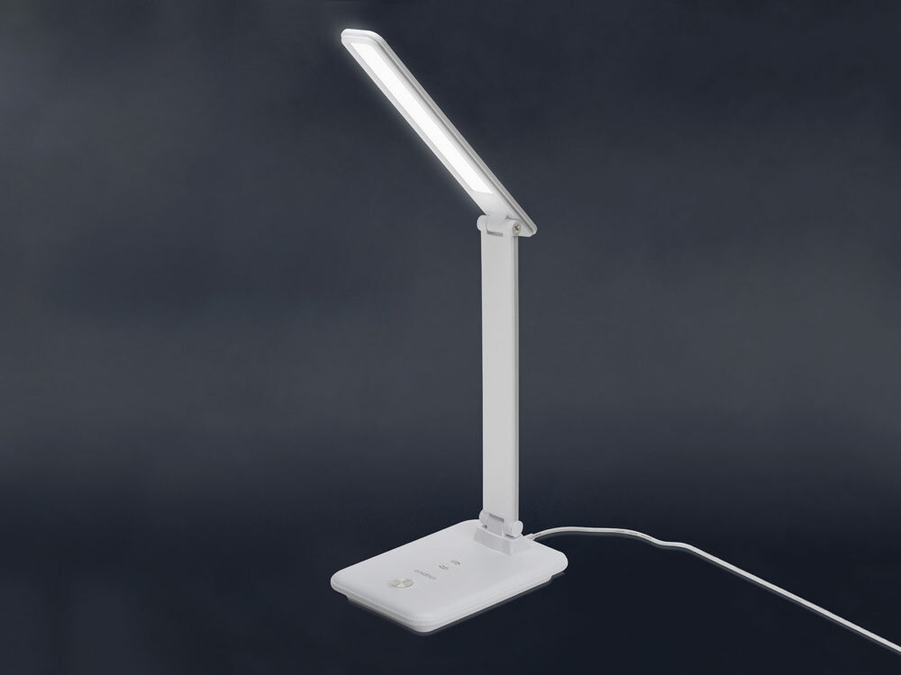 * Элегантный дизайн * Плавная регулировка яркости * Холодный, теплый и нейтральный свет * Сенсорное управление * Встроенная беспроводная зарядка Питание: от адаптера питания Материал корпуса: пластик Максимальная мощность светодиодов: до 7.5 Вт Цветовая температура: 2700/5000/6000К Световой поток: до 500 Лм Индекс цветопередачи: ≥80 Ra Срок службы светодиодов: до 30 000 часов Встроенная беспроводная зарядка Комплектация: Сетевой адаптер, документация