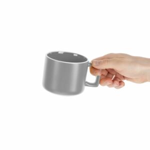 Глазурь спокойных оттенков, матовая снаружи и глянцевая внутри, графичная прямоугольная ручка — с чашкой Fusion не захочется расставаться.