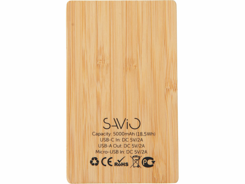 Компактный и стильный внешний аккумулятор ёмкостью 5 000 мАч — идеальный спутник для повседневных дел и коротких поездок. Его корпус сочетает в себе натуральный бамбук и переработанный ABS-пластик, что делает устройство не только более экологичным, но и визуально премиальным. Особый шарм ему придаёт встроенная панель с белой подсветкой с возможностью нанесения логотипа — ваш бренд или инициалы мягко засветятся в темноте, привлекая внимание и подчеркивая индивидуальность. Это не просто power bank — это экосознательный аксессуар, который заряжает ваши гаджеты и вдохновляет окружающих. - Компактный — 5 000 мАч в стильном корпусе для зарядки смартфона в дороге - Экологичный материал — натуральный бамбук + переработанный ABS-пластик - Логотип с подсветкой — ваш бренд мягко светится в темноте - Идеальный подарок — для клиентов, партнёров или сотрудников, кто ценит стиль и экологию