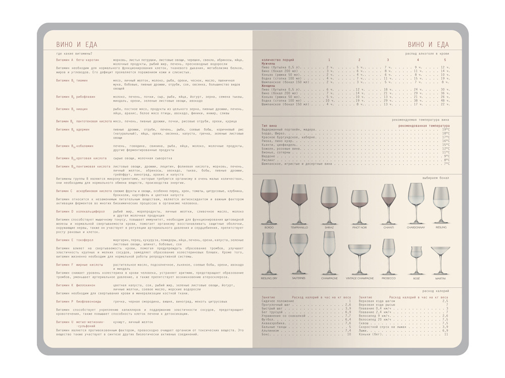Гибкая мягкая обложка с эффектом муара, тактильно приятная с рифленой фактурой – главное украшение недатированного ежедневника Soho ТМ Bruno Visconti. Ляссе в цвет обложки как легкое дополнение к строгому, но элегантному образу. Никаких дополнительных деталей, а сколько благородства. Ежедневник формата А5 имеет внутренний блок из 272 страниц. Блок изготовлен из бежевой бумаги плотностью 70 г/м2 и содержит: Покрытие soft touch придает обложке мягкость и создает приятные тактильные ощущения в работе с ежедневником. • раздел для планирования с линовкой и указанием времени с интервалом в один час; • страница для персональных данных; • страницы для планирования рабочих и личных дел по месяцам; • 10 страниц оригинальной справочной информации (вино и еда, мода, драгоценности, как выбирать подарок, методы борьбы со стрессом).