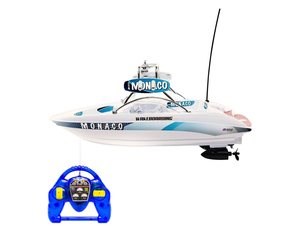 Радиоуправляемый катер Мonaco - новинка от HIPER . Катер обладает отличной управляемостью и маневренностью. Яркий дизайн не оставит равнодушным детей. Подойдет как для подарка, так и для прекрасного времяпровождения на открытом воздухе у водоема. Особенности: • Два мотора! • Масштаб 1:32 • Максимальная скорость до 5 км/ч • Яркий и красивый корпус из ударопрочного пластика • Задний ход • Не нужно ничего докупать! • НЕ ЗАПУСКАТЬ В СОЛЁНОЙ ВОДЕ ! Технические характеристики: - Радиус действия: до 15 метров - Длина катера – 39 см - Ширина катера – 15 см - Аккумулятор : Ni-Cd 4.8В / 700 мАч - Вес катера : 500 г - Время плавания : ~ 12 мин - Время зарядки: ~ 120 мин
