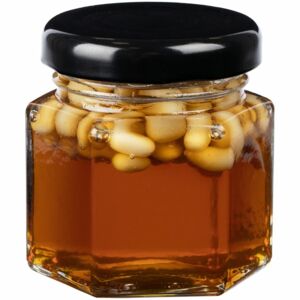 Милый мишка в шарфике с целой коллекцией разнообразного ароматного меда идеально дополняет основной, более практичный подарок — объемный шарф из толстой пряжи, который впишется в любой зимний образ.