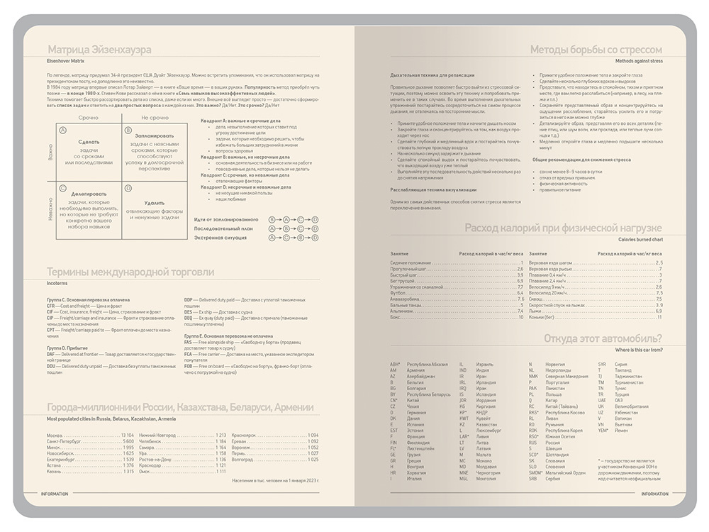 Элегантный датированный ежедневник "Megapolis Color" от Bruno Visconti идеально подходит для организации рабочего дня и ведения важных записей. Обложка из искусственной кожи с приятным на ощупь покрытием Soft Touch и обрез в тон создают гармоничный образ. Внутри – блок из бежевой бумаги плотностью 70 г/кв.м с разделами для планирования, календарем на 2026-2027 год и полезной справочной информацией. Для удобства навигации предусмотрена закладка-ляссе шириной 7 мм в цвет обложки.