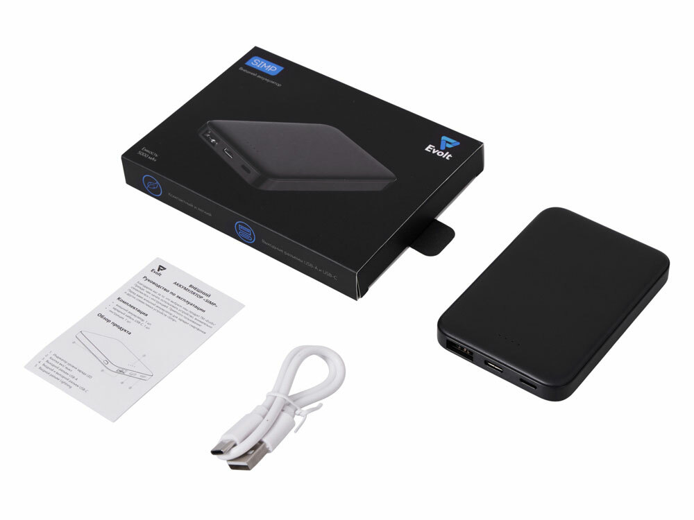 Внешний аккумулятор «Simp», 5000 мАч, черный в ассортименте цветов, материалов и моделей