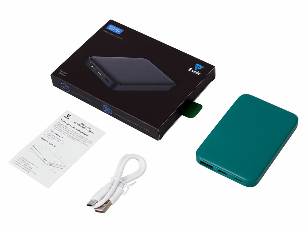 Внешний аккумулятор «Simp», 5000 мАч, зеленый в ассортименте цветов, материалов и моделей