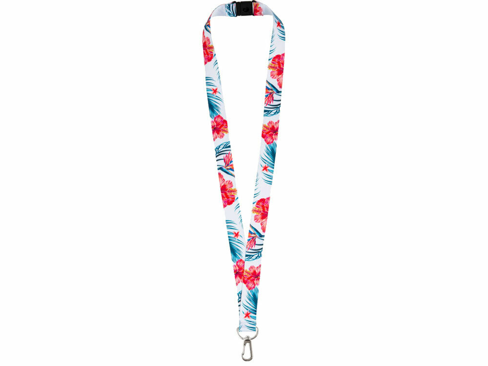 Ланъярд 2 см под сублимацию с карабином и замком обрыва, серебристый в ассортименте цветов, материалов и моделей