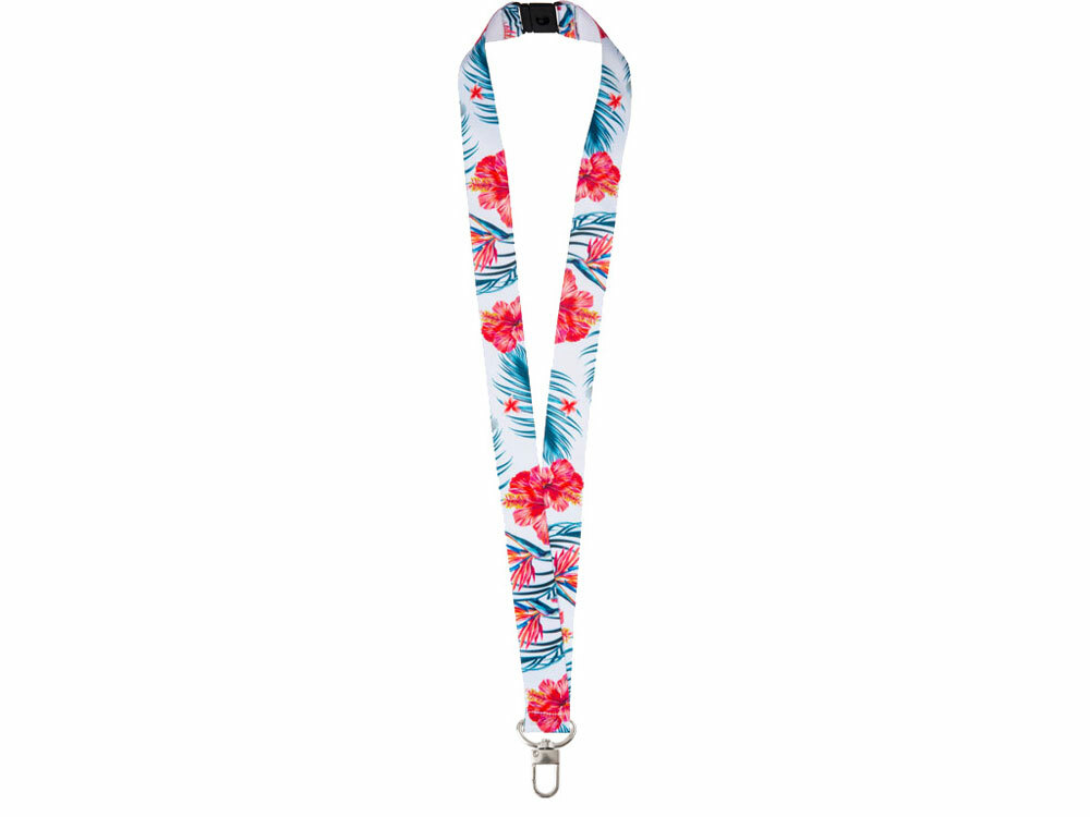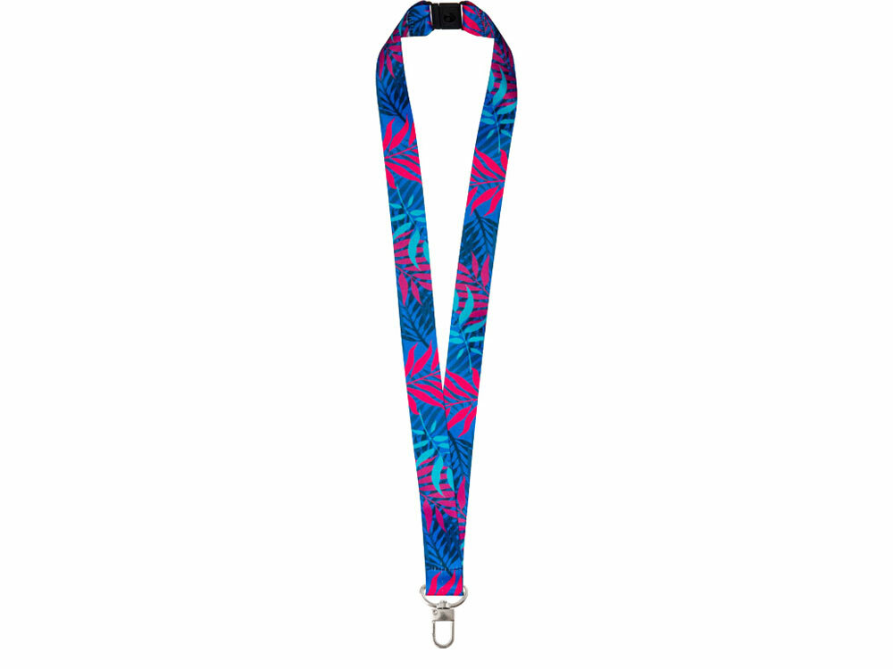 Ланъярд 2,5 см под сублимацию с трендовым карабином и замком обрыва в ассортименте цветов, материалов и моделей