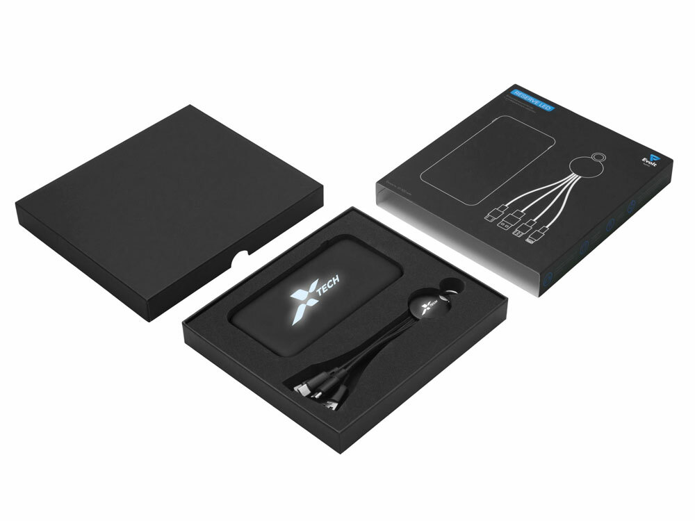 Практичный и стильный набор для зарядки в дороге: внешний аккумулятор на 10 000 мА·ч и универсальный кабель с тремя разъёмами (Micro USB, Lightning, USB Type-C). Оба элемента комплекта оснащены подсветкой логотипа — ваш бренд всегда на виду, даже в темноте. Повербанк обеспечивает 2–3 полных заряда смартфона и оснащён двумя выходами (USB-A и USB-C) для одновременной зарядки двух устройств. Поставляется в прочной подарочной коробке с шубером — идеальное решение для корпоративных подарков. • Подсветка логотипа на повербанке и кабеле — ваш бренд заметен даже в темноте. • Универсальный кабель «3 в 1» — подходит для всех популярных устройств. • Ёмкость 10 000 мА·ч — хватает на 2–3 полных заряда смартфона. • Два выхода (USB-A + USB-C) — заряжайте два устройства одновременно. • Премиальная упаковка — качественная коробка с шубером и мягким EVA ложементом.
