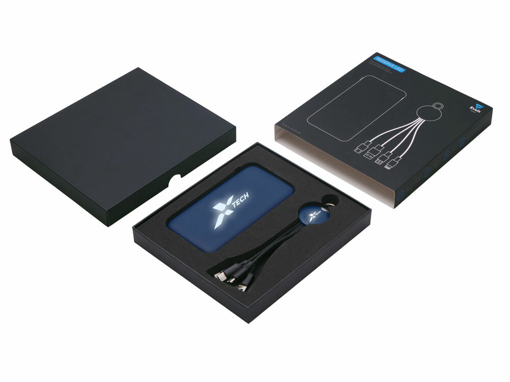 Практичный и стильный набор для зарядки в дороге: внешний аккумулятор на 10 000 мА·ч и универсальный кабель с тремя разъёмами (Micro USB, Lightning, USB Type-C). Оба элемента комплекта оснащены подсветкой логотипа — ваш бренд всегда на виду, даже в темноте. Повербанк обеспечивает 2–3 полных заряда смартфона и оснащён двумя выходами (USB-A и USB-C) для одновременной зарядки двух устройств. Поставляется в прочной подарочной коробке с шубером — идеальное решение для корпоративных подарков. • Подсветка логотипа на повербанке и кабеле — ваш бренд заметен даже в темноте. • Универсальный кабель «3 в 1» — подходит для всех популярных устройств. • Ёмкость 10 000 мА·ч — хватает на 2–3 полных заряда смартфона. • Два выхода (USB-A + USB-C) — заряжайте два устройства одновременно. • Премиальная упаковка — качественная коробка с шубером и мягким EVA ложементом.